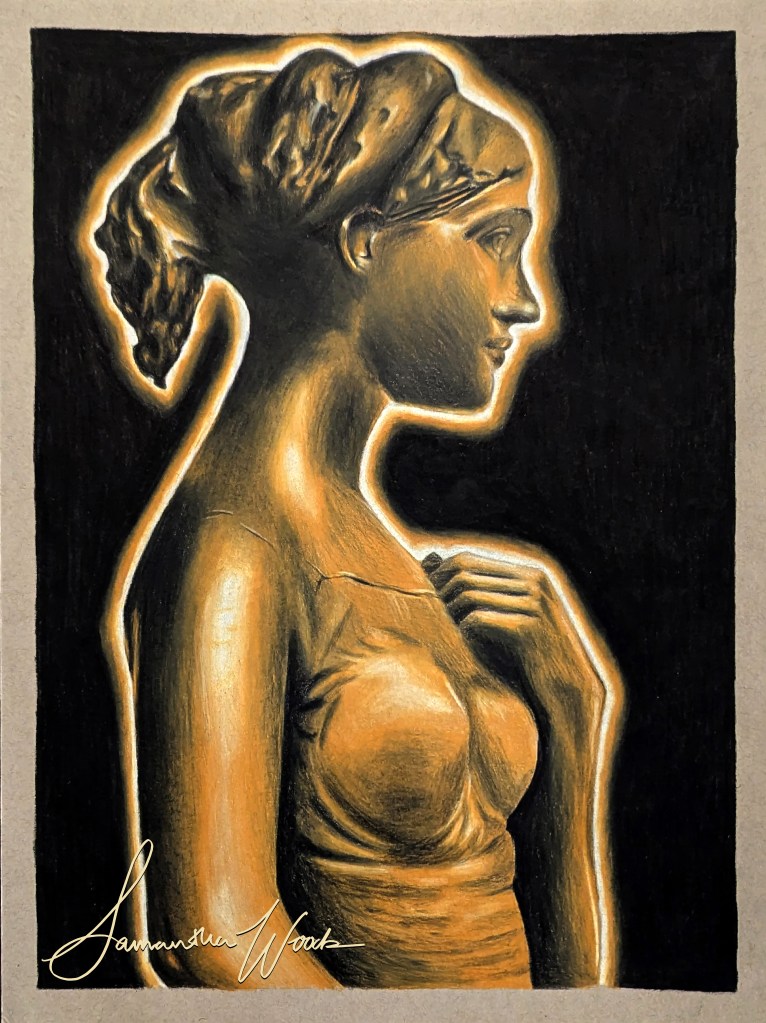 Colored pencil on gray toned paper